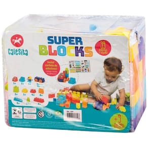 O super blocks é colorido e vem com formas que despertam a curiosidade dos pequenos.