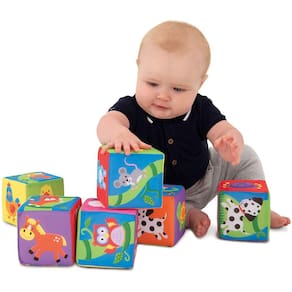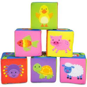 Stack, match, play! Este conjunto de 6 blocos macios coloridos são perfeitos para espremer, jogar e construir! Tátil e divertido, esses blocos também podem ser s para ajudar o menor a aprender a combinar e sequenciar. Apresenta 12 pares de animais, um veículo e uma história sequencial da estrada e uma história sequencial da torre de pé de feijão. Os blocos vêm com um saco de PVC com alça e são laváveis pela máquina.