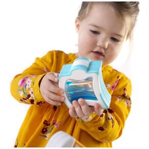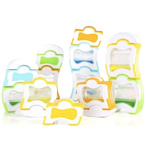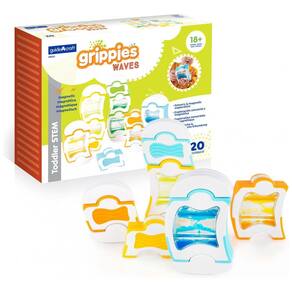 O conjunto Guidecraft Grippies Waves é um kit de construção magnético visual desenvolvido para crianças a partir de 18 meses. Composto por 20 peças em cinco tamanhos diferentes, cada bloco possui janelas transparentes que contêm água colorida em movimento, proporcionando uma experiência sensorial tátil e visual durante o empilhamento, equilíbrio e encaixe das peças. O produto promove o aprendizado dos princípios magnéticos, causalidade e energia cinética, estimulando habilidades motoras finas e grossas, além da observação. As peças são feitas de plástico macio com revestimento overmolded para maior conforto ao toque. O conjunto é ideal para desenvolvimento STEM em crianças pequenas, apoiando a exploração tátil e o entendimento básico de conceitos científicos de forma lúdica. As dimensões do conjunto são aproximadamente 35,6 cm de comprimento, 20,3 cm de largura e 20,3 cm de altura, com peso total de 2,59 kg.?