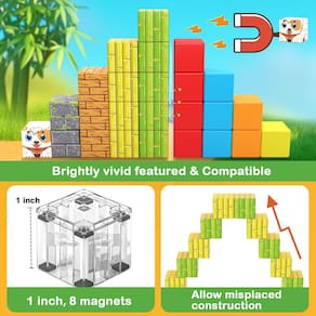 Prepare-se para experimentar diversão sem fim com os blocos Mine Magworld! Construa seu próprio universo pixelado e adicione suas figuras ou acessórios favoritos para criar um mundo imersivo. Mergulhe em aventuras emocionantes com brincadeiras divertidas e criativas. Blocos magnéticos desbloqueiam possibilidades ilimitadas, de construções simples a construções desafiadoras. Se você estiver criando uma floresta densa, uma casa aconchegante ou uma vila extensa, este conjunto incentiva a criatividade a cada passo. Deixe a imaginação das crianças correr solta com este conjunto aberto. - ?100% compatível?Crie seu próprio recanto de livros com 16 tipos de blocos em destaque e comece uma jornada em um mundo de natureza e tranquilidade! Os blocos magnéticos Goodidea são 100% compatíveis com os principais blocos de construção magnéticos de 2,5 cm no mercado. Vem com um manual de instruções com designs que variam de construções simples a estruturas mais complexas. As crianças também podem misturar e combinar com outros conjuntos de construção, despertando criatividade infinita para explorar o Magic Mine World. - ?Segurança e qualidade?Os 8 cantos do bloco magnético são soldados usando tecnologia de soldagem ultrassônica, garantindo uma fixação segura e estável dos ímãs. Diferente de muitos outros brinquedos magnéticos, nosso conjunto de blocos magnéticos possui ímãs internos fortes, tornando mais fácil para as crianças conectarem os cubos e criar estruturas estáveis. Com bordas lisas e arredondadas e um tamanho adequado para crianças, esses blocos são seguros para suas mãos. - ?Designs envolventes?A tecnologia UV torna as artes de construção mais vivas e realistas do que as de cubos simples de cores puras, o conjunto mundial de 90 peças magnéticas oferece uma variedade de padrões. As crianças terão tudo para decorar seu bosque de bambu, desfrutar de diversão sem fim em casa, no carro, ao ar livre no jardim ou até mesmo na sala de aula. Este brinquedo versátil pode grudar na geladeira ou ser utilizado em qualquer superfície plana, tornando-o ideal para qualquer ambiente! - ?Companhia de crescimento?Brinquedos de construção e construção são uma ótima maneira para as crianças desenvolverem habilidades essenciais. Com os blocos magnéticos Goodidea, seus filhos podem construir, girar, desmontar e reconstruir, o que estimula a criatividade, concentração, paciência, trabalho em equipe, bem como habilidades espaciais e motoras. Seja tocado sozinho ou com amigos, oferece uma alternativa divertida e envolvente ao tempo de tela. - ?Melhor opção de presente?A beleza dos blocos magnéticos Goodidea é que eles mantêm crianças de todas as idades entretidas por anos, adequados para meninos e meninas de 3 anos ou mais, até mesmo adultos ou jogadores ávidos que amam construir irão apreciá-los. São excelentes presentes educativos para aniversário, Natal, Dia das Crianças, atividades domésticas e projetos escolares.