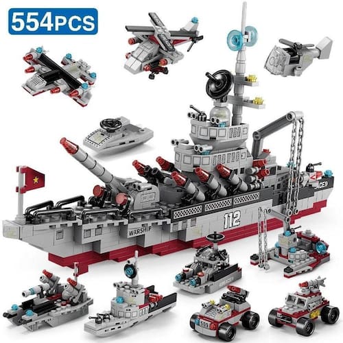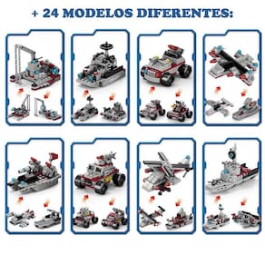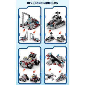 Blocos de montar combate guerra 554 peças mega navio + 24 modelos carros aviões helicópteros navios lanchas Blocos de montar com 554 peças 8 em 1: mega navio + 24 veículos de combate e guerra. 100% compatível lego, excelente qualidade e enorme custo x benefício 3x a 4x . Monte 1 mega navio ou até 24 modelos diferentes combinados: - navios - aviões - helicópteros - tanques - carros mísseis / anti bombas - navios - barcos - lanchas - torre / base de comando - e muito mais Diversão garantida para as crianças... E adultos Estimule a imaginação, coordenação motora e criatividade das crianças com blocos de montar Produzido com materiais ecológicos de qualidade abs 1 linha . Conteúdo: - manual: completo, com todos os detalhes de imagens e montagens. Idade mínima sugerida: 6 anos Homologação Inmetro: ITAC-OCP-0052/2019 Marca: Lele Brother