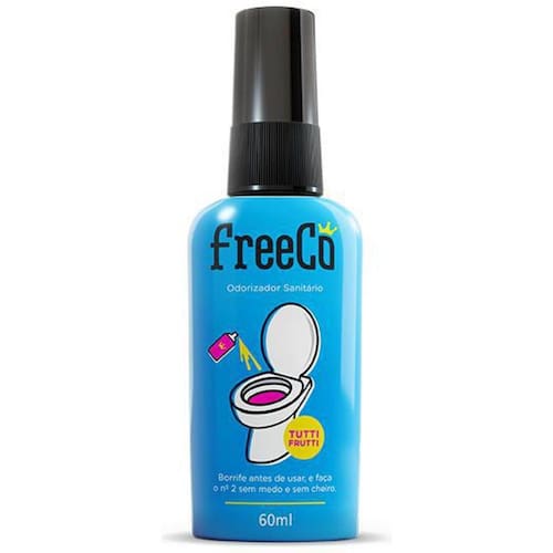 Com fragrância de tutti frutti, FreeCô é 1º bloqueador de odores sanitários do Brasil, eliminando de forma definitiva o mau cheiro do nº2 e também o constrangimento em utilizar o banheiro. Esta versão com 60 ml é ideal para deixar em banheiros e lavabos. Na sua casa ou no trabalho. Modo de usar: 01. Antes de utilizar o vaso, posicione o frasco na altura da tampa do sanitário com o borrifador direcionado à água e borrife 5 vezes. 02. Os óleos naturais criarão uma barreira que evitará que os odores Desagradáveis apareçam. 03. Apenas o aroma de FreeCô Lavanda será perceptível e o banheiro ficará sem nenhum vestígio de mau cheiro. Borrifou, usou, bloqueou Ean: 7898961258102