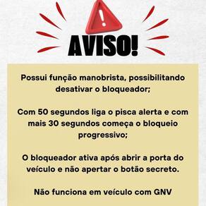 Bloqueador automotivo tarsafe taramps block part g2 universal 12v função manobrista carro. A divisão de alarmes da taramps foi vendida para a look out, então o mesmo produto será enviado, porém como marca look out. Modelo disponível: Block part g2 Compatível com: Universal para veículos com injeção eletrônica e carburadores com válvula solenoide Especificação técnica: Bloqueia a parte elétrica do veículo para evitar furtos Bloqueio ativado ao abrir e fechar a porta com ignição ligada Acompanha 6 fios com botão secreto, led e fusível Consumo: 1 a 6ma Tensão de alimentação: 9v a 15v Função manobrista Led indicativo na cor vermelha Possui saída de acionamento de sirene dedicada Cancela o bloqueio ao pressionar o botão reset secreto Central compacta Fácil instalação Excelente durabilidade Rele bloqueio 20 amperes Conteúdo da embalagem: 01 central 01 chicote com botão secreto e led Manual de instruções e certificado de Importante: de 3 meses da fábrica. Valor unitário. Imagens meramente ilustrativas. Recomendamos que a instalação seja feita por profissional especializado e não nos responsabilizamos pelo mau uso do produto. Não recomendamos a compra para veiculos adaptados gnv Instale o bloqueador somente com técnico habilitado As ruas andam tão perigosas que é preciso proteger o seu veículo contra furtos. Um produto que fará essa função é esse bloqueador automotivo. Fabricado pela taramps, o modelo block part g2 é inovador, contando com uma função extra de manobrista. A central, ao ser instalada no veículo, detecta a abertura ou fechamento da porta e, se a ignição estiver ligada, inicia-se o bloqueio disparando a sirene se houver e, logo após, começa o bloqueio progressivo. Para cancelar essa função é só apertar o botão reset e, dessa forma, o bloqueio é cortado. Serve em qualquer veículo 12v, então, garanta o seu de fábrica: 3 meses