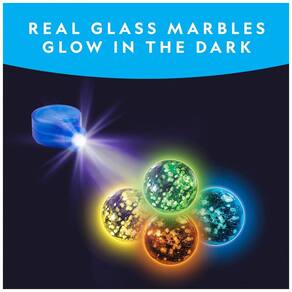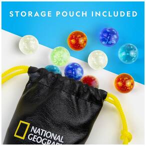 Deslumbre-se com este conjunto de 25 bolas de vidro que brilham no escuro, incluindo 4 azuis claros, 4 azuis escuros, 5 amarelas, 4 verdes, 4 laranjas e 4 vermelhas, criando um espetáculo de galáxias no escuro. Acompanha um prático pouch para armazenamento. Utilize a luz UV para carregar as bolas e fazê-las brilhar ainda mais intensamente. Ideal para corridas em conjunto com o National Geographic Marble Run, proporcionando diversão educacional e interativa. De alta qualidade e recomendado para crianças a partir de 8 anos.