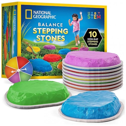 Este conjunto inclui 10 pedras de equilíbrio de plástico durável em 6 cores vibrantes, ideais para crianças a partir de 3 anos e até 68kg. Perfeitas para brincar dentro de casa ou ao ar livre, esses brinquedos sensoriais ativos promovem habilidades de coordenação e equilíbrio. Cada pedra possui uma base de borracha antiderrapante e superfície texturizada para maior segurança. Com um design resistente, podem ser empilhadas facilmente para armazenamento ou transporte, podendo ser usadas em casa, no parque, na creche ou onde as crianças gostem de brincar ativamente. As crianças podem criar jogos divertidos com as pedras usando o girador incluído. Desenvolva o equilíbrio, a coordenação e as habilidades motoras grossas enquanto se diverte de forma ativa e imaginativa!