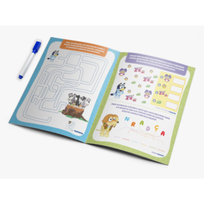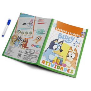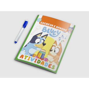 Prepare-se para a diversão com Bluey! Este livro é cheio de coisas legais para você fazer. Com sua caneta especial, você pode escrever e apagar quantas vezes quiser! Explore um monte de desafios, jogos e quebra-cabeças incríveis. É perfeito para levar em viagens ou para brincar em casa. Junte-se a Bluey e seus amigos para horas de diversão!