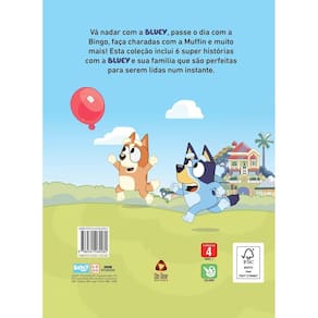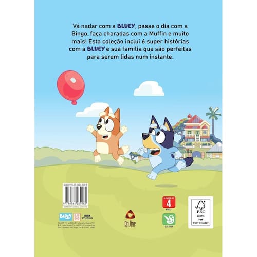 Mergulhe em um dia cheio de diversão com Bluey e sua família! Nade com Bluey, passe o dia com Bingo, resolva charadas com Muffin e muito mais! Esta coleção apresenta 6 histórias encantadoras com Bluey e seus amigos, ideais para leituras rápidas e cheias de aventura. Cada história é perfeita para criar momentos especiais e divertidos com a família.