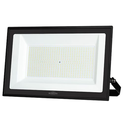 Refletor LED TECH?PRO 500?W da Blumenau Iluminação, com corpo em alumínio robusto e lente de vidro, oferece iluminação de alta performance com fluxo luminoso de 45?000?lm e eficiência de até 92?lm/W. Ideal para uso externo em fachadas, entradas, áreas de piscina, outdoors e eventos, conta com grau de proteção IP66, resistência a poeira, jatos d’água e voltagem bivolt automática (100-240?V), além de varistor para proteção contra oscilações de energia (até 3?500?V). Com vida útil de 30?000?h, IRC =?80 e temperatura de cor de 6.500?K, proporciona luz fria vibrante e segura. Seu design compacto (47 × 29 × 6?cm), suporte ajustável e pintura em pó conferem facilidade de instalação e durabilidade superior. Garantia de até 2 anos.