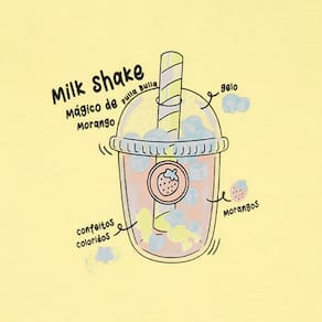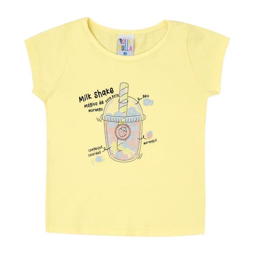 Toda estilosinha e pronta para ir tomar um milk shake com a mamãe! Confeccionada em tecido meia malha na cor amarela, a blusinha possuí estampa de milk shake com escrita "Milk shake mágico de morango". A peça conta com gola mais arredondada e manguinhas curtas, tudo para sua pequena sentir-se confortável nos dias de calor.