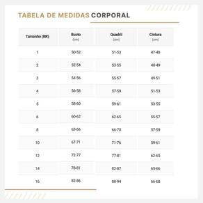 16 anos: Comprimento 65cm / Largura Tórax 48cm / Comprimento da manga:20 cm