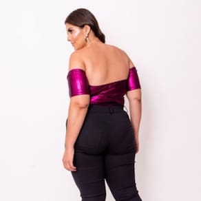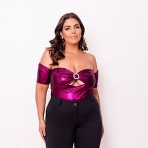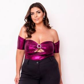 Blusa Body Plus Size Ombro a Ombro Apresentamos um body plus size verdadeiramente deslumbrante, criado para brilhar em festas e comemorações especiais. Este body ombro a ombro é uma onde à elegância, com um detalhe no decote que confere um caimento sofisticado e envolvente.