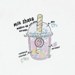 Toda estilosinha e pronta para ir tomar um milk shake com a mamãe! Confeccionada em tecido meia malha na cor branca, a blusinha possuí estampa de milk shake com escrita "Milk shake mágico de morango". A peça conta com gola mais arredondada e manguinhas curtas, tudo para sua pequena sentir-se confortável nos dias de calor.