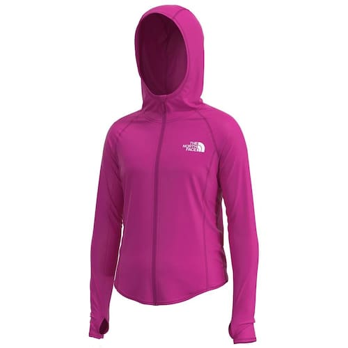 Ideal para os dias quentes de sol ou praia, perto de um lago alpino ou apenas na encosta de uma montanha. Esta blusa com capuz e zíper usa um tecido de poliéster leve que absorve a umidade e repele o sol para lutar contra o sol forte.