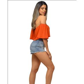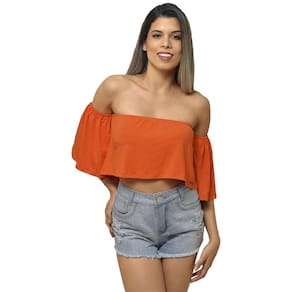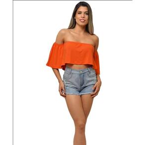 Blusa Cropped Ciganinha Feminino Viscolycra Laranja Tendência