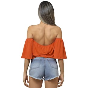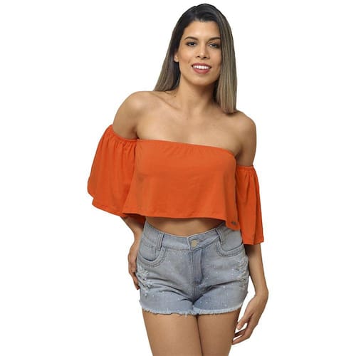 Blusa Cropped Ciganinha Feminino Viscolycra Laranja Tendência - Laranja - P