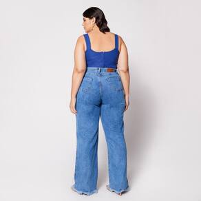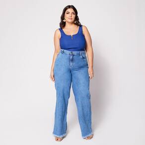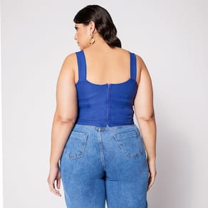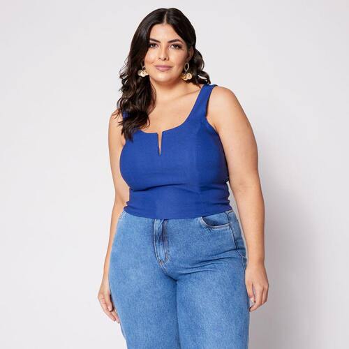 Blusa Cropped de Alça Plus com Aro em V e Bojo Azul