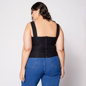 Blusa Cropped de Alça Plus com Aro em V Preto