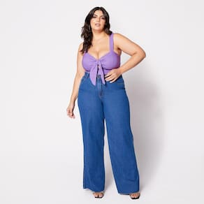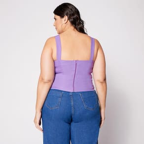 Blusa Cropped de Alça Plus com Nó e Bojo Lilás