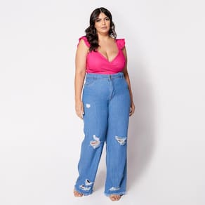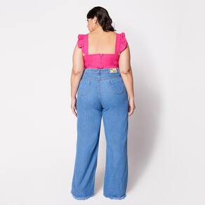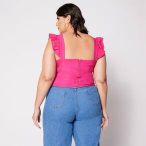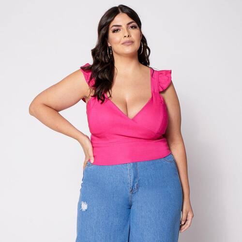 Blusa Cropped de Alça Plus Cruzado com Bojo e Babado na Manga