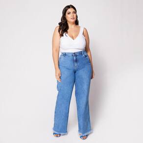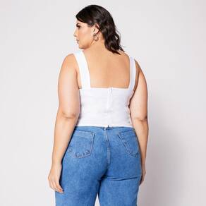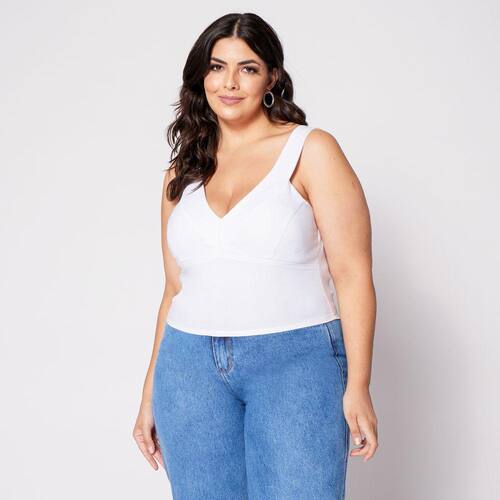 Blusa Cropped de Alça Plus Decote V com Bojo