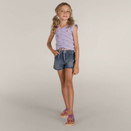 Para as meninas que amam estilo, aposte na Blusa cropped infantil menina, confeccionada em cotton, a peça conta detalhe de amarração frontal que deixa a peça ainda mais estilosa, possui as mangas curtas e a gola V. Combine um jeans da coleção e deixe a pequena arrasar!