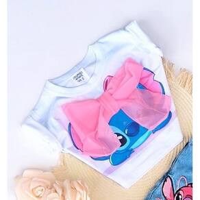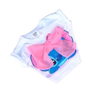 Blusa Cropped feminina infantil, super divertida, com personagens da Disney, confortável e de excelente qualidade. Cropped Disney com estampa na parte frontal, aplique de laço na frente. *Atenção: Não acompanha acessórios.