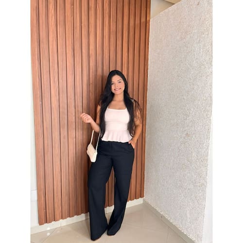 A blusa é uma regata, uma peça sem mangas com alças largas e um decote quadrado. Ela se caracteriza por ter um caimento mais ajustado na parte superior e um babado ou prega marcante na região da cintura, o que cria um volume extra e define a silhueta. tecido confortável, que se adapta bem ao corpo. Marca: Não Informado