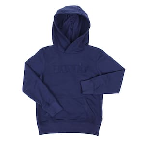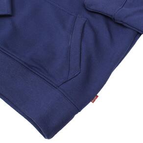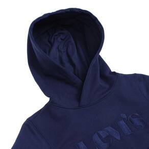 Moletom masculino Infantojuvenil Levi's autêntico fabricado em tecido 50% Algodão e 50% Poliéster na cor Azul, possui mangas longas, bolso modelo canguru, capuz, elásticos na barra e nos punhos e detalhe bordado na parte frontal.