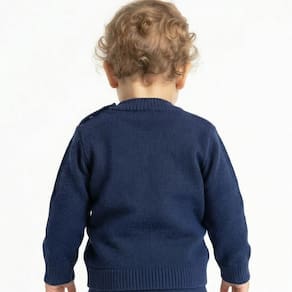 Blusa de Raposa Tricô Kids Trança Canelado feito em tecido algodão e acrílico, gola redonda, estampa frontal, manga longa e etiquetas personalizadas.