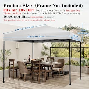 - A melhor escolha - A capa superior de reposição de dossel de 10 x 10 pés se encaixa na maioria das estruturas de dossel padrão com 4 pernas retas e é fácil de dobrar e guardar em sua bolsa. O dossel mede 10' W(304,8 cm)x 10' D(304,8 cm)x 37" H(93,98 cm)(quando colocado na estrutura do dossel), uma boa opção para substituir o que está quebrado ou comprá-lo como reserva. Não é para qualquer dossel com pernas inclinadas! Não é adequado para CROWN Frame!