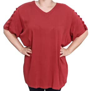 A Blusa Feminina Básica MC Botões Plus Size na cor Terracota é a opção perfeita para quem busca conforto e versatilidade no dia a dia.