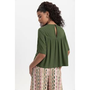 A blusa feminina Essendi a escolha ideal para o seu dia a dia. Confeccionada em viscose creponada de qualidade, conta com mangas 3/4, gola redonda e detalhe em pregas na região do busto. Seu fechamento delicado nas costas garante ainda mais estilo e praticidade. Componha looks elegantes ou despojados com uma única peça. Um item versátil para quem ama moda com personalidade, invista! Marca: Não Informado