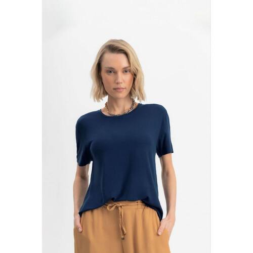 Blusa feminina em malha viscose Essendi - Azul Marinho - P