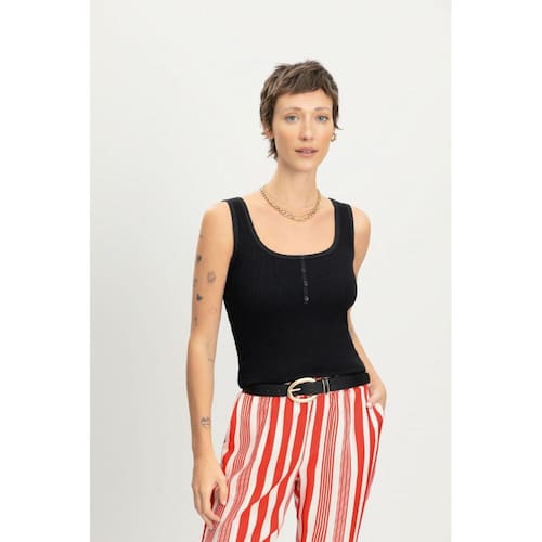 Adicione um toque de estilo ao seu guarda-roupa com a blusa feminina Essendi. Confeccionada em ribana 2x1 canelada, ela apresenta um decote quadrado e abertura parcial por botões, garantindo um visual moderno e despojado. As mangas em modelagem regata proporcionam conforto e liberdade de movimento. Combine com jeans ou saias para um look casual e elegante. Renove seu estoque com essa peça essencial. Marca: Não Informado Marca: Não Informado