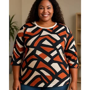 A Blusa Feminina Manga 3/4 Estampada Plus Size Laiza é perfeita para quem busca praticidade, conforto e estilo em uma única peça.