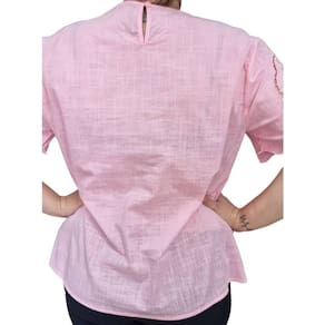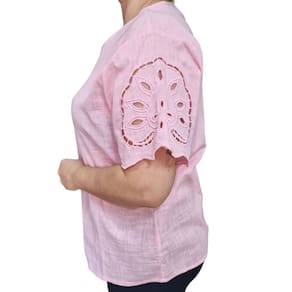 Blusa Feminina Manga Curta Bordada Rosa Plus Size.