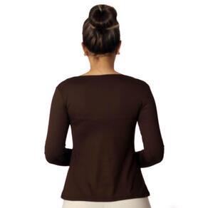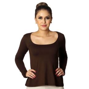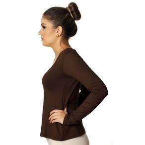 Blusa feminina manga longa decote redondo evasê, marrom, cor clássica, em tecido LIGHT CO2 biodegradável (fio AMNI SOUL ECO, o primeiro fio de nylon biodegradável do mundo) e com fator de proteção solar 50FPS+ UVA e UVB.