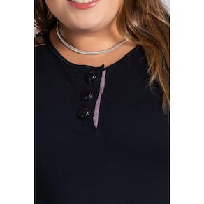 Blusa feminina elaborada em viscose com elastano. Possui botões funcionais no decote, detalhes contrastantes nas laterais da gola, mangas e botões que dão aquele diferencial a peça. Possui a barra arredondada, que proporciona o efeito tapa bumbum, proporcionando aquele conforto e segurança que toda mulher deseja na hora de montar seus looks. Seu toque é macio, uma peça leve e com boa elasticidade.