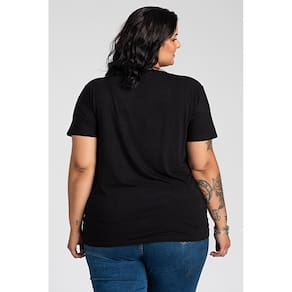 T-shirt feminina plus size elaborada em malha visco decote redondo.