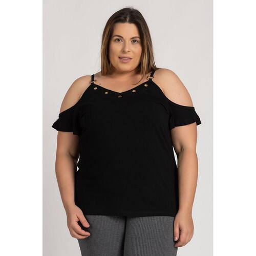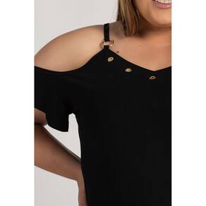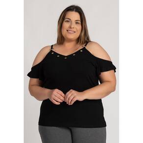 Blusa feminina plus size elaborada em visco. Peça com boa elasticidade, leve com toque macio. Possui ilhós no decote, fivela nas alças e detalhe nas mangas. Do look casual ao chique, para o dia ou noite, você terá a peça chave que dará aquele diferencial, que todas as mulheres buscam para arrasar!