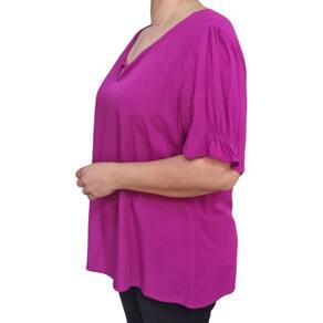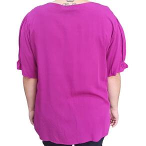 Blusa Feminina Trave Franzido MC Plus Size Fucsia.