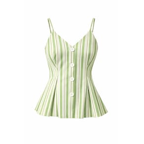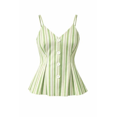 Blusa Feminina Tricoline Listrada Decote V Elegante Moderna - Verde - P