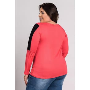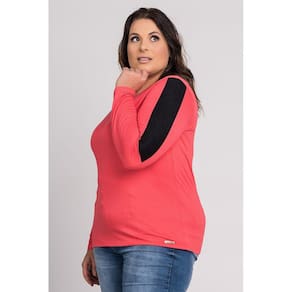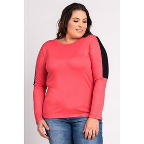 Blusa feminina plus size elaborada em visco. Peça com boa elasticidade, leve, com toque macio. Gola redonda, etiqueta da marca, detalhe de tecido e cor contrastante nas mangas, que proporcionam um diferencial para a pesa e o look na hora de vestir e compor as mais variadas opções! Marca usa a denominação de P ao GG para os itens que são plus!