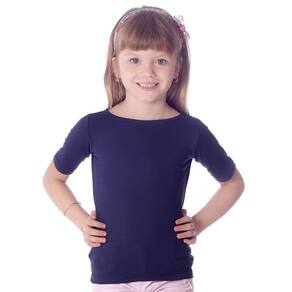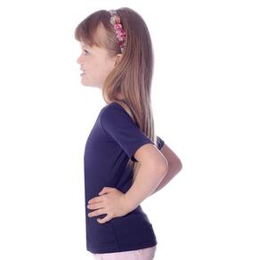 Blusa infantil feminina meia manga decote canoa azul marinho, clássica e atemporal, em tecido LIGHT CO2 biodegradável (fio AMNI SOUL ECO, o primeiro fio de nylon biodegradável do mundo), com fator de proteção solar 50FPS+ UVA e UVB.