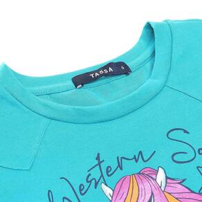 Camiseta infantil na qualidade Tassa, fabricada em tecido 100% Algodão na cor Turquesa, possui mangas curtas perfeita para os dias de calor, gola tradicional e estampa na parte frontal. Uma peça perfeita para sua pequena, sendo bastante versátil!