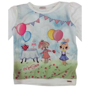 Blusa infantil manga longa fem Mon Sucrê off white festa