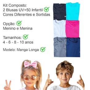 Blusa Infantil Manga Longa Proteção Solar UV+50: Kit 2 Cores 4 a 10 anos.