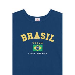 Blusa infantil menina confeccionada em malha leve e confortável. Com mangas curtas e gola redonda, essa peça traz uma estampa vibrante do Brasil. Perfeita para mostrar o amor pelo nosso país na copa do mundo. A modelagem tradicional garante um caimento ideal, permitindo liberdade de movimento para as pequenas. Combine com shorts ou saias da coleção para um look divertido e cheio de estilo.