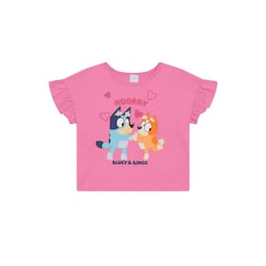 Prepare-se para dançar e brilhar com a blusa da Bluey! Confeccionada em meia malha confortável, possui mangas curtas em babado que dão um toque especial e divertido. A estampa da Bluey com glitter vai inspirar a sua pequena a soltar a imaginação e dançar como a personagem mais querida do momento! Vista a sua filha com a alegria contagiante da Bluey!
