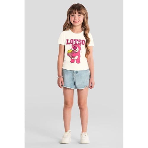 Sua pequena vai se apaixonar por essa blusa encantadora do Lotso, o ursinho mais! Confeccionada em meia malha, ela traz uma estampa cheia de personalidade com aplique de strass, que adiciona um brilho especial ao visual. Com modelagem confortável, mangas curtas, gola redonda e toque macio, é perfeita para o dia a dia ou ocasiões especiais. A peça perfeita para iluminar o guarda-roupa da sua menina!